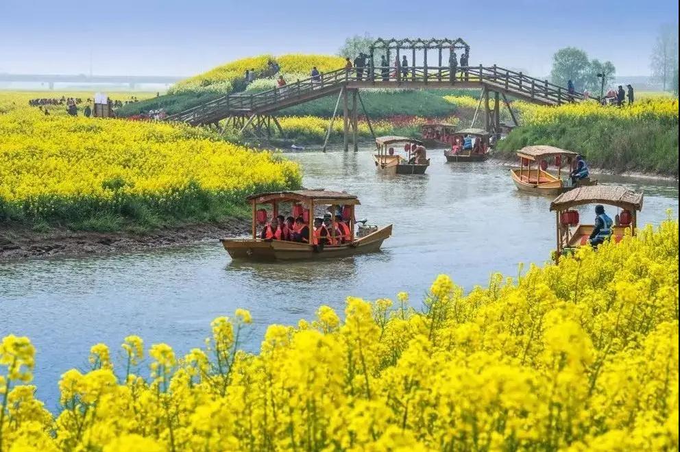 早餐后,出發(fā)前往【高郵湖上花海】位于高郵湖漫水公路北側(cè)的新民灘,依托新民灘良好的生態(tài)資源基礎(chǔ)和高郵湖水環(huán)境,主要以油菜花勝境、天然馬場、露營基地、休閑運動為重點。2000多畝的油菜花競相綻放,與高郵湖的湖灘濕地、鄉(xiāng)間公路交織在一起,從空中俯瞰,再現(xiàn)“水天一色、煙波浩渺”的壯美自然景觀,吸引游客徜徉花海,感受春天美麗風(fēng)光。金燦燦的油菜花與碧波湖水相互映襯,構(gòu)成一幅‘湖上花?!拿利惍嬀?,游客可以徜徉金色花海,欣賞千畝菜花、湖上帆船的秀美景色。水流舒緩,碧波澄澈,流金溢彩,花色醉人。游覽結(jié)束后返回溫馨家園。