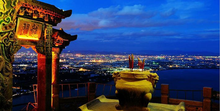 乘車前往【西山風(fēng)景區(qū)】贈(zèng)送電瓶車及環(huán)保車,早起,去西山看日出西山,西山坐落在滇池的西岸,又稱碧雞山,遠(yuǎn)眺西山群峰,既像一尊龐大的睡佛,又似一個(gè)美麗曲腿仰臥在滇池畔,象青絲垂海的睡美人。因此西山稱為"臥佛山",又稱為"睡美人山"。西山,昆明"金碧湖山"的象征,雄、險(xiǎn)、奇、秀、美盡在西山!