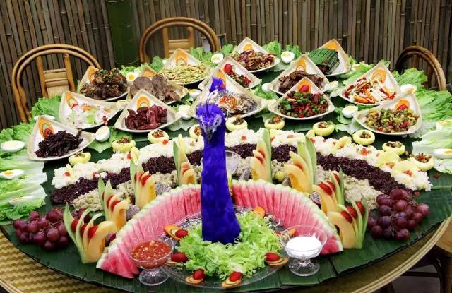 午餐享用較有特色的云南十大主題名宴之一西雙版納【孔雀宴】從原料選擇、烹飪制作,到造型擺盤、餐具搭配,每個(gè)細(xì)節(jié)都精巧細(xì)致,別出心裁。例如活靈活現(xiàn)的孔雀頭,形神兼具的孔雀尾,還有利用干冰營造出的仙云輕霧,讓本就美麗的孔雀更添仙氣兒,吃貨朋友們稱之為“瑤臺(tái)孔雀宴”。