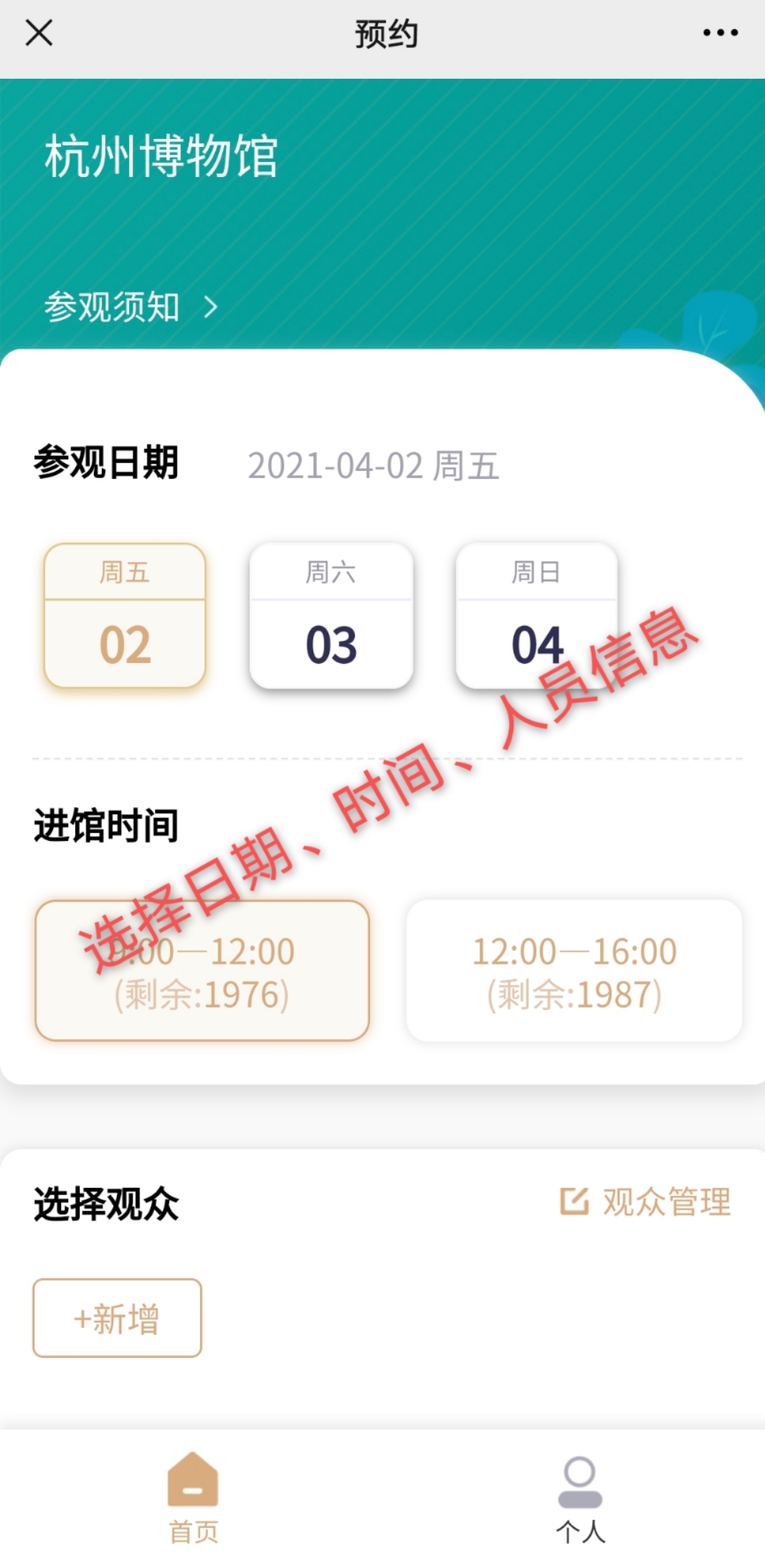 1.我館實(shí)行分時(shí)段實(shí)名預(yù)約參觀,觀眾進(jìn)入“杭州博物館”微信公眾號(hào),可提前3天預(yù)約。預(yù)約時(shí)段分為:9:00-12:00,可預(yù)約人次2000;12:00-16:00,可預(yù)約人次2000。