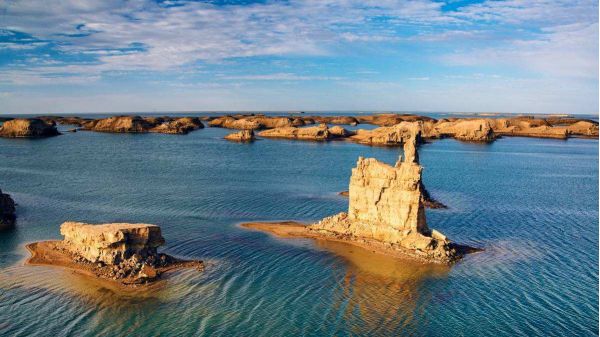 陸地的雅丹地貌很多,但是水上雅丹卻極為少有,離大柴旦240公里左右,過了東臺(tái)收費(fèi)站約50公里,位于315國(guó)道旁2公里左右的鴨湖是這片特殊地貌之中的特殊,是世界上唯一一片在水上的雅丹地貌。這里還未被過度開發(fā),這里還有著神秘面紗,你是探秘也好,你是好奇也罷,當(dāng)你走進(jìn)這里,你一定會(huì)愛上她。