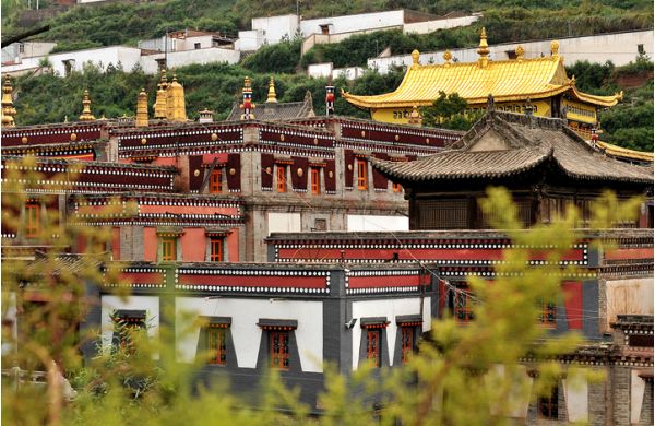 塔爾寺以大金瓦寺為中心,主要建筑依山傍塬,有大金瓦寺、大經(jīng)堂、彌勒殿、九間殿、花寺、小金瓦寺、居巴扎倉、丁科扎倉、曼巴扎倉、大拉浪、大廚房、如意寶塔等9300余間(座),組成一龐大的藏漢結(jié)合的建筑群,占地面積45萬平方米。