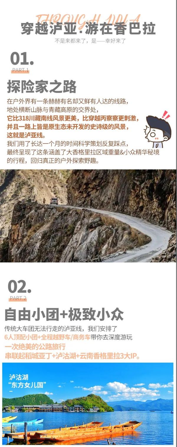 私人訂制:我們業(yè)務(wù)范圍囊括了全國各大城市,川西、西北、東北,在路上永遠(yuǎn)有我們的身影。我們將為每一個(gè)有定制需求的你策劃出獨(dú)屬于自己的完美旅行。