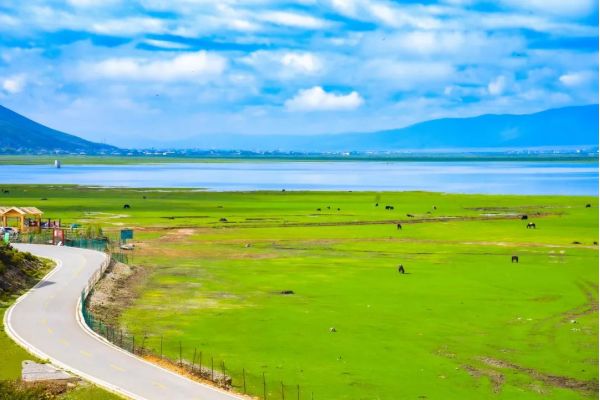 在香格里拉市6公里開外有這樣一個(gè)地方,地勢(shì)平坦、三面環(huán)山, 那曲河、奶子河等十余條河彎彎曲曲,流經(jīng)草原注入這里;在夏末秋初豐水期時(shí)大量積水形成了大面積湖面,這便是【納帕海】,而在枯水期湖面縮小時(shí)這里就變成大片的沼澤草甸,成為“迪慶香格里拉最大最美的草原”——【依拉草原】。這水草豐茂的草原如內(nèi)蒙古大草原一般遼闊,有“香格里拉后花園”“大西南的塞北風(fēng)光”之稱,一望無際的草原,星羅棋布的牛羊馬,穿梭期間的著藏裝的牧民,純粹澈靜的湖泊,蔚藍(lán)高曠的藍(lán)天,還有滿地叫不上名的野花匯成一片海,很容易就讓人醉進(jìn)去,與牛馬同呼吸,共天地一顏色。感興趣的小伙伴還可以騎馬馳騁草場之上,不過務(wù)必要注意自身安全哦。