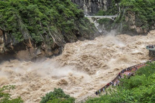 金沙江經(jīng)長江第一灣之后忽然掉頭北上,從哈巴雪山和玉龍雪山之間的夾縫中硬擠過去,原本平靜祥和的江水頓時(shí)變得怒不可遏,形成了世界上最壯觀的大峽谷,而峽谷中最窄的地方就是我們今早的目的地——聞名天下的【虎跳峽】 。我們的團(tuán)期覆蓋虎跳峽最壯美的汛期,震撼的視覺沖擊能瞬時(shí)將你驚得無言,狂怒的江水拍打著崢嶸亂石,激起沖天水柱和浪花, 浪與岸、浪與岸之間碰撞發(fā)出雷霆般的轟鳴,空氣中也滿帶著泥沙味道。在大自然的鬼斧神工面前,人是如此渺小和微不足道。