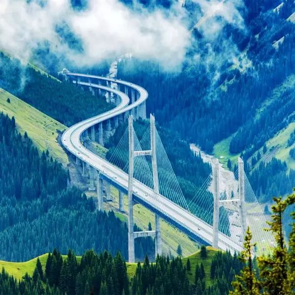 果子溝大橋在設計施工中秉承"以最小限度破壞、最大限度的恢復"的環(huán)保理念,在克服地質(zhì)災害頻發(fā)影響通行的同時,邊施工邊進行環(huán)?;謴凸ぷ鳌=ǔ傻拇髽驑蛏砼c果子溝的美景渾然一體,將為果子溝國家級風景區(qū)再添一道美麗風景線。
