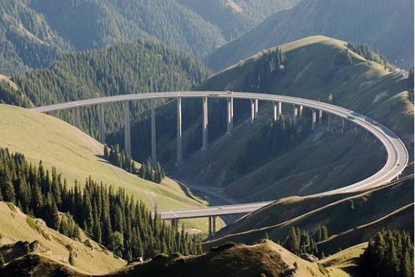 果子溝大橋作為新疆第一座斜拉橋、第一高橋,是新疆最大最重要的橋梁,同時也是全國首座公路鋼桁梁斜拉橋,它集新技術、新結構、新工藝、新設備"四新"于一身,是新疆公路建設史上一次重大突破。在新疆首次使用大體積混凝土溫度控制技術、塔梁異步施工工藝、液壓爬膜、自行式移動模架等國內(nèi)領先技術,為山區(qū)高速公路施工積累了寶貴的經(jīng)驗。