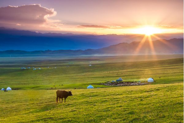 早起拍日出,后乘車前往那拉提。
