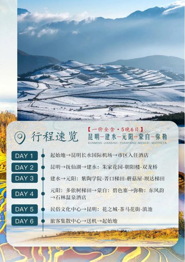 昆明+建水+元陽+蒙自+彌勒雙飛