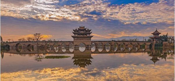 隨后游覽清乾隆年間的【雙龍橋】,雙龍橋是一座三閣十七孔大石拱橋,橫亙于南盤江支流的滬江河,因兩河猶如雙龍蜿蜒盤曲而得名;是國家地理雜志云南非常理想的拍攝點之一。