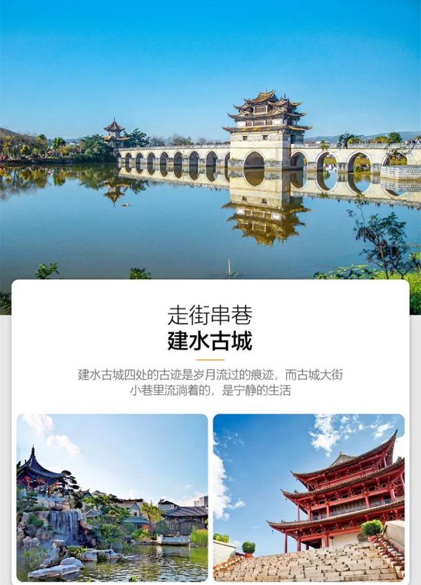 午餐后,前往建水古城,游覽清代名宅【朱家花園】,朱家花園是一組保持完好的清代私人建筑群,具有豐富文化內(nèi)涵又稱“滇南大觀園”。后參觀建水西門大板井,自元初明代洪武年間,歷經(jīng)了千年的滄桑歲月,古井不但記載著建水的歷史,同時也是古城儒家文化興盛的印證。