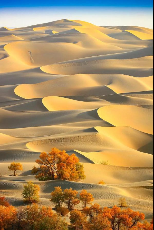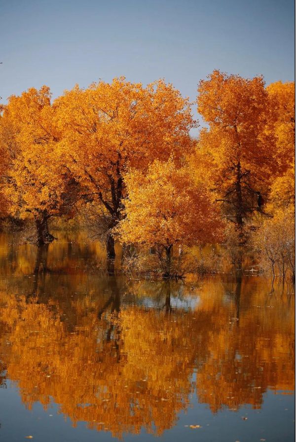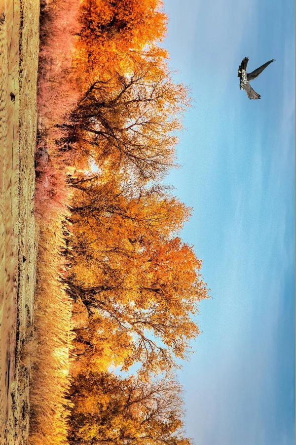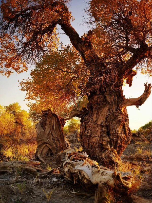 胡楊林擇水而生,卻不懼風(fēng)沙。沉默不語,卻恣意綻放。