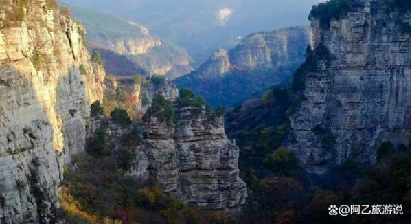 山路并非一路向上,而是起起伏伏,需要翻過好幾處山頭,一路上能看到各種陡峭的山崖,高深的峽谷。山上的樹木非常茂密,即使是崖壁也不例外,不少植物在石縫中堅強的生存著。