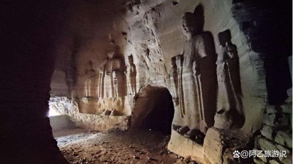 所謂龍洞,是一個東西相通,長約百余米的悠長山洞。洞內(nèi)非常寬敞,初入洞穴便是一處高敞穹隆石室,石壁是古人所刻的佛像。洞內(nèi)氣溫常年維持在30度以上,絕對是避暑的好去處,堪稱自然界的空調(diào)。