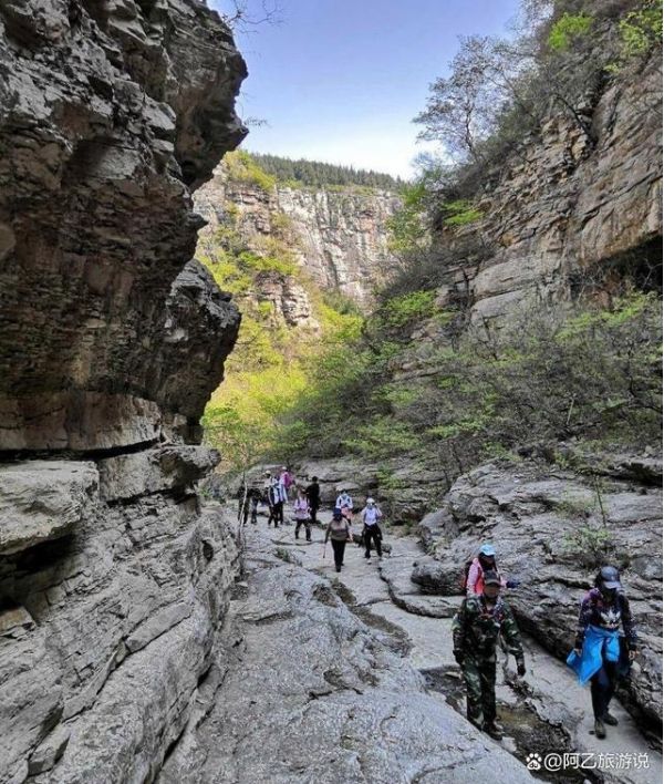 想要從龍洞一帶下到藏龍澗,需要先穿過一段名為“一線天”的狹窄山道。山道足有百米長,寬度僅容兩人并行,更重要的是這一段傾斜的山道,坡度在45度左右。