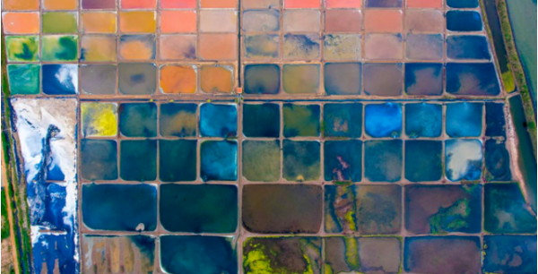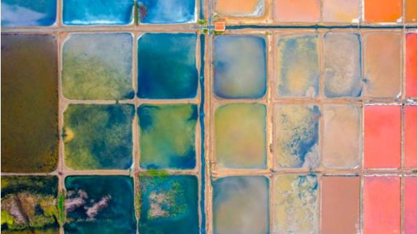 鹽田我們見得多了,像大名鼎鼎的茶卡鹽湖、烏尤尼鹽沼、翡翠湖等等,都屬于鹽場(chǎng),雖然號(hào)稱天上的鏡子,但也沒有這么美,再加上鹽地都是四四方方的,連旁邊的鹽地都能看到顏色上的差別,簡(jiǎn)直不可思議。