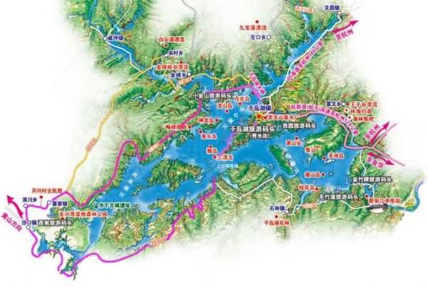 一說起千島湖,總能想起農(nóng)夫山泉的那句家喻戶曉的廣告語“農(nóng)夫山泉,有點甜”。據(jù)說,農(nóng)夫山泉的水就取自于“天下第一秀水”——千島湖。春天在哪里呀?春天就在那青山碧水的千島湖里!春天的千島湖,鶯啼燕語,百花齊放,到處散發(fā)出春天的氣息,是旅游的最好時節(jié)。那去千島湖要怎么玩?