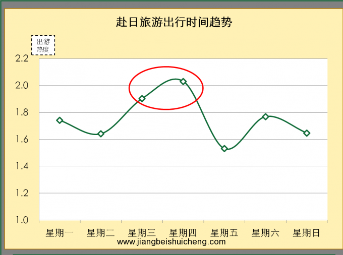 赴日旅游周二至周四呈上升趨勢(shì),周四最高