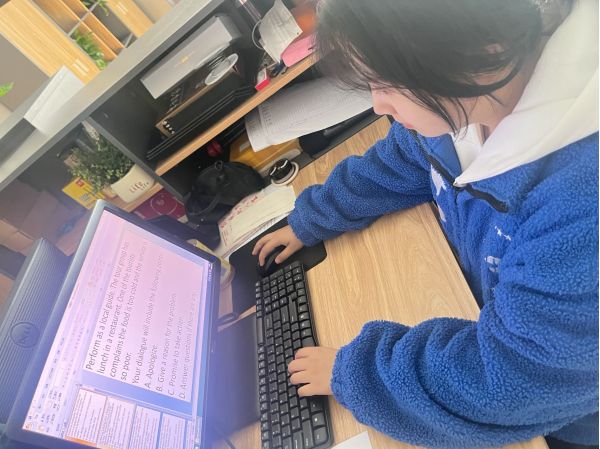 下午2:20,我們來(lái)到了實(shí)訓(xùn)室,由劉老師為我們進(jìn)行英語(yǔ)環(huán)節(jié)的指導(dǎo)。