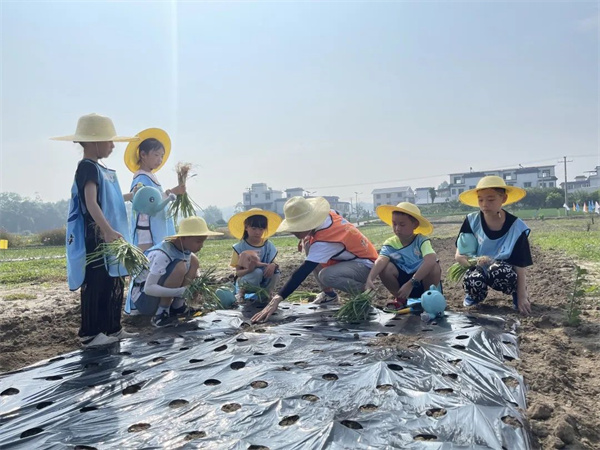 “今天我第一次種了小蔥,還參觀了香蔥博物館,雖然天氣很熱,栽小蔥很辛苦,汗水把衣服都打濕了,但我覺(jué)得很有趣,跟小朋友在一起玩也很開(kāi)心,同時(shí)我也學(xué)到了很多知識(shí)。”學(xué)生冷梓墨說(shuō)。