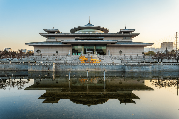 西安博物院的主體建筑—博物館(文物展館)由中國工程院院士、陜西歷史博物館的設(shè)計者、著名建筑設(shè)計師張錦秋創(chuàng)意設(shè)計。整體外觀以天圓地方理念創(chuàng)作,突出體現(xiàn)中國傳統(tǒng)的文化思想,與同院的小雁塔以及薦福寺古建筑群相得益彰、交相輝映。