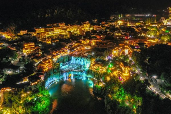 湖南湘西州芙蓉鎮(zhèn)夜景。湘西芙蓉鎮(zhèn)文化旅游開(kāi)發(fā)有限公司供圖“湘西太美了,有時(shí)間一定要去體驗(yàn)一下……”這幾天,湘西文旅公眾號(hào)熱鬧非凡,不少游客朋友看到我的短視頻后來(lái)點(diǎn)贊留言。
