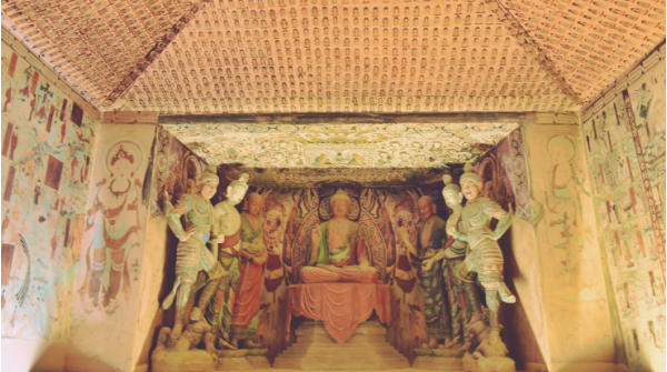 莫高窟,坐落于河西走廊的西部盡頭的敦煌。它的開鑿從十六國(guó)時(shí)期至元代,前后延續(xù)約1000年,這在中國(guó)石窟中絕無(wú)僅有。它既是中國(guó)古代文明的一個(gè)璀璨的藝術(shù)寶庫(kù),也是古代絲綢之路上曾經(jīng)發(fā)生過(guò)的不同文明之間對(duì)話和交流的重要見證。