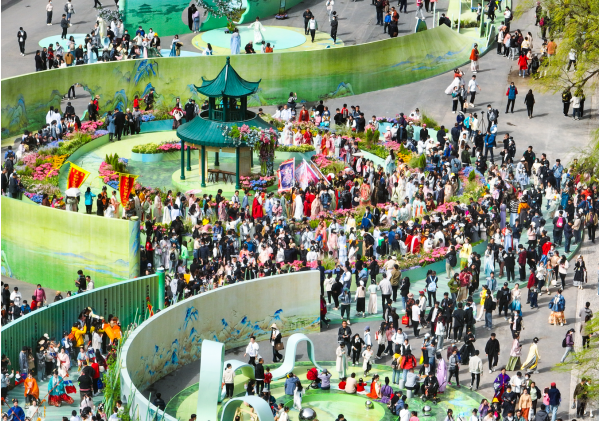 近年來,云臺山景區(qū)以文旅文創(chuàng)為引領,基于對中華優(yōu)秀傳統(tǒng)文化的創(chuàng)造性轉化和創(chuàng)新性發(fā)展,圍繞“竹林七賢”等核心文化持續(xù)打造IP活動及爆款產品,豐富沉浸式文旅新業(yè)態(tài),漢服活動每年引流20余萬人次,引爆春游熱潮,已然成為全國傳統(tǒng)文化愛好者圈層爆款活動。據介紹,在微博和抖音等平臺,云臺山漢服花朝節(jié)的相關話題曝光超5億次。