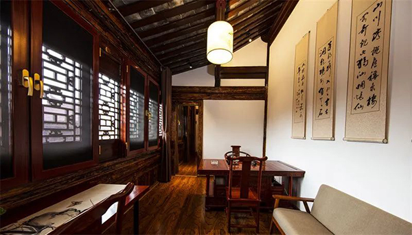 尤其數(shù)面照壁上的山水畫(huà)卷,讓客棧的空間更顯寬闊和立體。