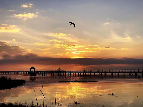 早晨,太陽(yáng)的光芒噴薄而出,萬(wàn)道霞光將天邊的云,地上的梯田都染上顏色。