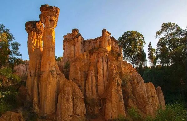 黃聯(lián)土林是遠(yuǎn)古時(shí)期受冰水沉積流動(dòng)和地殼運(yùn)動(dòng)影響,龜裂的沙礫層被地表水長(zhǎng)年累月的滲透、沖刷、加深、擴(kuò)大而形成千姿百態(tài)的藝術(shù)奇珍,有“自然雕塑博物館”之稱。