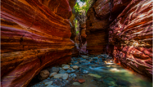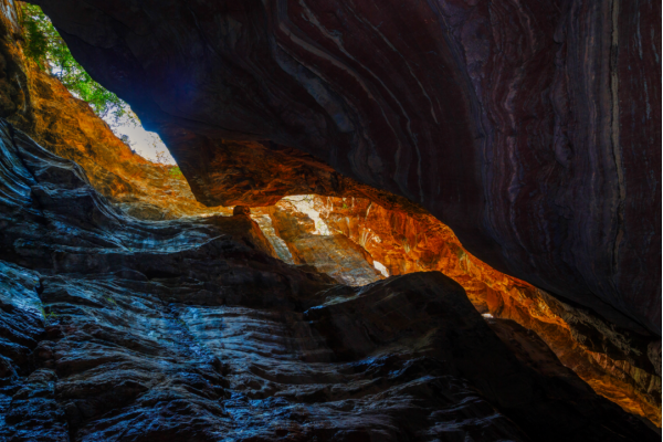 抬頭仰望,紅色的絕壁展現(xiàn)出一幅幅自然而成的山水、人物畫(huà)卷,好像經(jīng)過(guò)藝術(shù)家精雕細(xì)刻,惟妙惟肖,美麗的畫(huà)面讓人遐想不已。