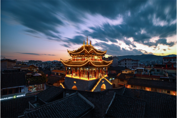 古城以鐘鼓樓為界形成“穿城三里三、圍城九里九”,以南北中軸線為主的“四街三關(guān)二十三巷”的棋盤式格局。城內(nèi)的鐘鼓樓又名凌霄樓,始建于清雍正年間,被譽(yù)為“南來建州第一樓”,其“五星抱月”式樓頂為川西南所獨(dú)有。漫步青石街上,一樓一底的青瓦栗色木板樓房琳瑯滿目??v橫交錯(cuò)的小巷內(nèi),大量明清時(shí)期修建的民宅、寺廟、會(huì)館等星羅棋布,小小會(huì)理,城中有異景,巷里藏乾坤。行走其間,在一磚一瓦上,能觸摸到會(huì)理市最古老的脈搏;在一苔一蘚間,能聞聽到會(huì)理市最久遠(yuǎn)的傳說。