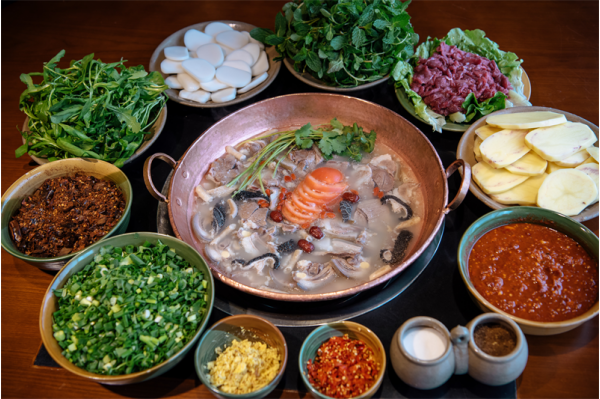 以新鮮羊肉,配以爽滑的米粉,加入鮮羊肉湯,及各種調(diào)料和具有特色的油辣椒,米粉入口即化,老少兼宜,羊肉肥瘦適中,油而不膩。這是會(huì)理市首屈一指的小吃——羊肉粉。