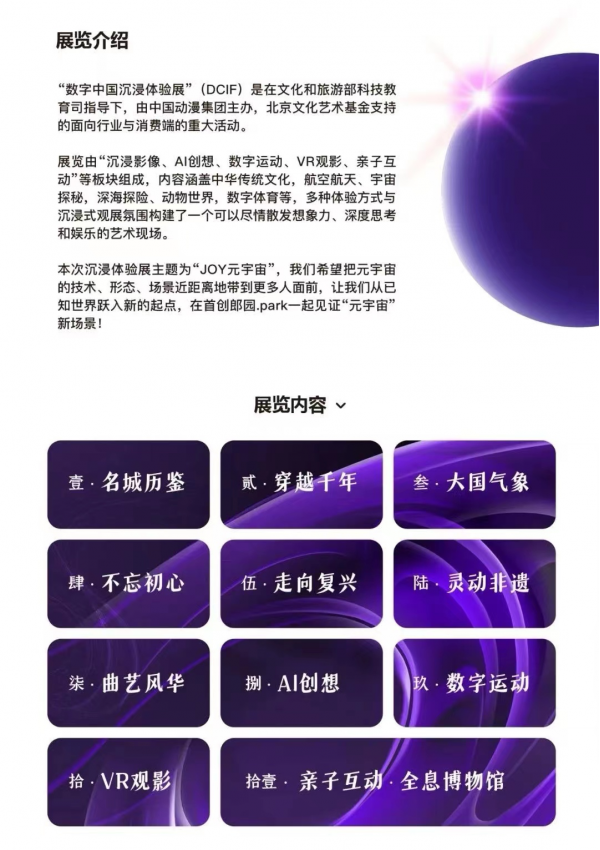 3月10日,以“JOY元宇宙”為主題的“數(shù)字中國沉浸體驗(yàn)展”在北京市石景山區(qū)首創(chuàng)·郎園Park開幕。此次展覽由文化和旅游部科技教育司指導(dǎo)、中國動漫集團(tuán)主辦、北京文化藝術(shù)基金支持,將于3月11日面向公眾開放,持續(xù)至3月26日。
