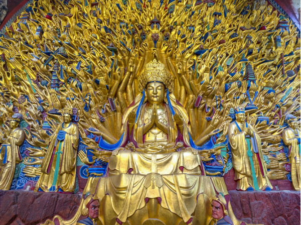 牧牛道場的石刻非常生活化,看似在講牧牛人和牛之間的互動變化,實則是用生活化的方式傳達出佛教禪觀的修正過程;圓覺洞是修煉成佛的最后一步,體現(xiàn)的是佛祖問心的過程,這個洞深12米,有三絕:采光、排水以及鑿石,進去的時候一片黑暗,后來慢慢變亮,就是這個洞采光的特點,也給人一種心靈得到洗滌逐漸變得通透的感覺;最令人震撼的石刻就是千手觀音像了,經(jīng)過多年的修復,千手觀音終于在世人面前呈現(xiàn)出她最完美和輝宏的姿態(tài),身披金縷,面容莊嚴,據(jù)修復數(shù)據(jù)顯示此處千手觀音像共有1008只手,每只手的姿態(tài)和手中的法器無一重復,是名副其實的千手觀音,在每只手的掌中都有一只眼睛,也是一處通風口,既有藝術(shù)性又能保證石刻不被風化,千年而不倒。