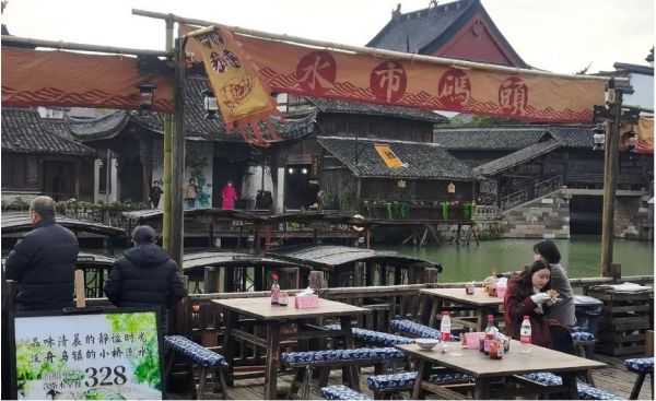 清晨,天剛蒙蒙亮,充滿生活氣息的早市就已經(jīng)開(kāi)啟。早市期間,四鄉(xiāng)八鄰的村民都會(huì)搖著船出來(lái)喝早茶:糖炒栗子、梅干菜燒餅、餛飩、煎餃、包子……品種琳瑯滿目,想要吃啥,任憑自己選。