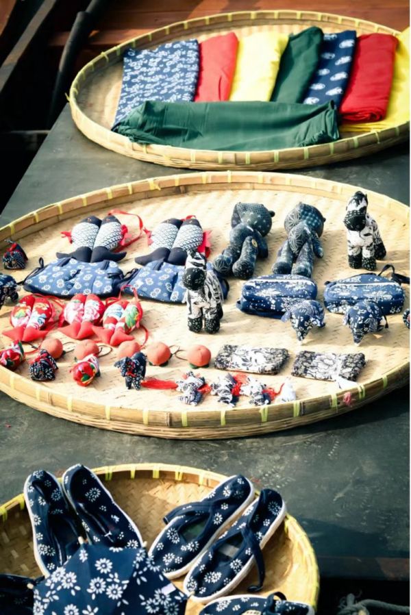 仔細(xì)逛一圈,能看到五花八門(mén)的小商品:藍(lán)印花布,布鞋,錦鯉掛墜……挑選一些心儀的小玩意,自己穿戴,或者送給家人、朋友,都是不錯(cuò)的選擇。