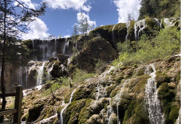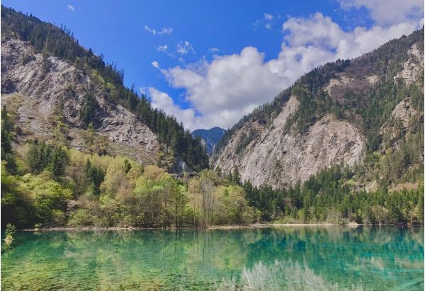 黃山歸來(lái)不看云,九寨歸來(lái)不看水,九寨山水,天然原始,四季景色變幻無(wú)窮,尤其是秋季,沿湖連綿數(shù)十里彩林美不勝收。九寨溝的精靈是水,湖、泉、河、灘連綴一體,千顏萬(wàn)色,高低錯(cuò)落的群瀑高唱低吟,大大小小的群海碧藍(lán)澄澈,水中倒映紅葉、綠樹(shù)、雪峰、藍(lán)天,變幻無(wú)窮;水在樹(shù)間流,樹(shù)在水中長(zhǎng),花樹(shù)開(kāi)在水中央