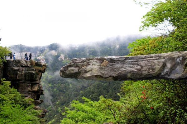 毛主席的七絕詩:“暮色蒼茫看勁松,亂云飛渡仍從容。天生一個仙人洞,無限風光在險峰?!彼鑼懙木褪清\繡谷景色。