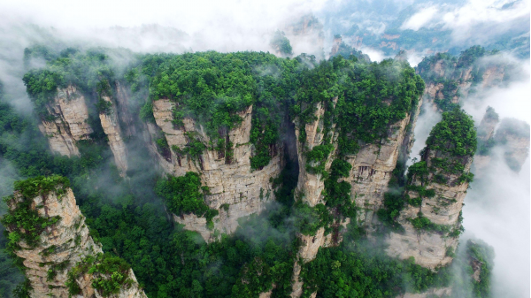 云霧籠罩中的張家界自帶“仙境”濾鏡