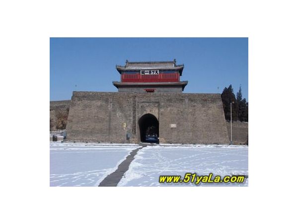 山海關城是一座土筑磚包的雄偉關城,城高14米,厚7米,周長4公里,呈正方形。整個城池與萬里長城相連,以城為關。城有四門:東曰鎮(zhèn)東即天下第一關;西曰迎恩;南曰望洋;北曰威遠。登上山海關城樓北望,萬山重疊,長城蜿蜒,景色壯觀。南望為“老龍頭”的寧海城,內有澄海樓,稍北為南翼城。關城很堅固,東門除了建有甕城外,東門箭樓兩側還筑有臨閭樓、威遠堂、牧營樓和靖邊樓。城北還筑有北翼城,以駐兵防守和儲備糧草。為防衛(wèi)的需要,城關周圍還筑有眾多的城堡和星羅棋布的敵臺、烽火臺,這樣就形成了以長城為骨干,以“天下第一關”為中心,主體兩翼、左輔右弼、前防后衛(wèi)的古代城防體系。