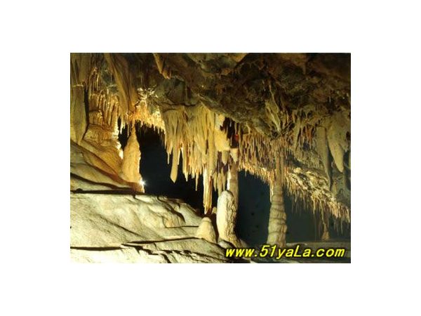已開發(fā)的洞內(nèi)景觀面積約20公頃,分旱洞和水洞。共四層,長13公里,最高處百余米。屬石灰?guī)r地下河侵蝕型洞穴。兩層水洞與兩層旱洞上下縱橫,形成洞下洞,樓上樓螺旋結(jié)構,最大洞廳的面積12000平方米,可容納上萬人。洞內(nèi)有一個水庫、兩條陰河、三條地下瀑布、四個水潭、十三個大廳、九十六條游廊。洞內(nèi)流痕、邊石、倒石芽、倒鍋狀窩穴階段發(fā)育良好,鈣質(zhì)石積物呈五顏六色,絢麗多資。穹頂石壁滴水沉淀的石乳、石柱、石筍、石幔、石琴、石花,如水晶玉石,琳瑯滿目,異彩紛呈,美不勝收,有“地下迷宮”之美稱。