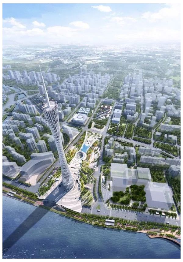廣州塔廣場(chǎng)的二層未來將與廣州塔二層平臺(tái)連通,為市民和游客提供人與自然互動(dòng)的戶外城市客廳,成為復(fù)合功能的戶外藝術(shù)廣場(chǎng)。廣場(chǎng)以“珠水漣漪”為設(shè)計(jì)理念,提取廣州塔“小蠻腰”曲線造型及水波線型元素,形成廣場(chǎng)場(chǎng)地構(gòu)成肌理與造型。