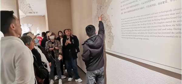 首先,講解組的各位成員首先來到的是中國運河文化博物館,跟隨旅行團一起傾聽運河博物館的文化,并從中學習講解員的語言、動作、手勢等。講解員解說時擁有強大的語言駕馭能力,能夠?qū)⒊橄蟮膬?nèi)容具體化,通過一個個的動人的運河故事,引起我們的興趣。