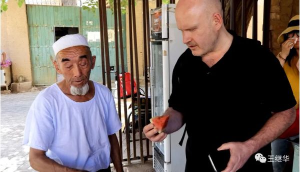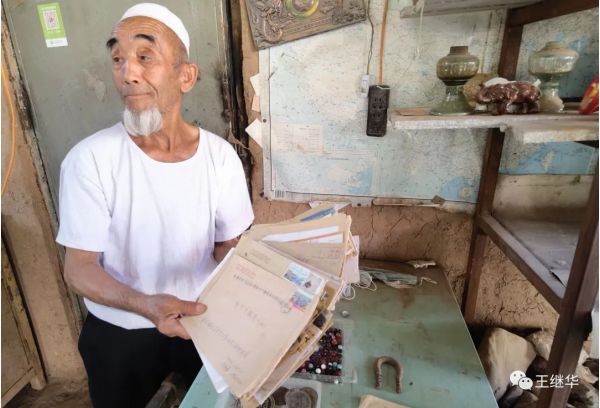 老頭叫阿不力駿今年75歲,后面那個(gè)中年男人是她兒子。