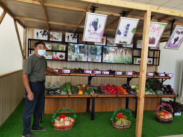 活動(dòng)現(xiàn)場(chǎng)分為鎮(zhèn)域特色產(chǎn)品展賣區(qū)和打卡拍照點(diǎn)位兩個(gè)功能區(qū)。在展賣區(qū),用茅草、榆木等元素搭建的仿古攤位錯(cuò)落有致,葡萄、番薯、黃瓜等農(nóng)產(chǎn)品整齊擺放,展銷員化身古代“店小二”,吆喝售賣,熱鬧非凡。在拍照點(diǎn),一張榆木桌,兩把木長(zhǎng)椅,以及棉麻老粗布古旗、蓑衣斗笠、茶盞等老物件元素,高度還原了古代道旁的茅草茶棚。游客紛紛帶著在展賣區(qū)消費(fèi)獲得的“銅錢(qián)”,到此換裝拍照、打卡留念。“這是香緹,是巨峰葡萄和玫瑰香葡萄雜交的品種,香味濃,吃起來(lái)不澀;這是金手指,含糖量高,非常甜,女士和小朋友比較喜歡;這是陽(yáng)光玫瑰,又叫晴王葡萄,是今年的網(wǎng)紅葡萄……”活動(dòng)現(xiàn)場(chǎng),北京采育喜山葡萄生態(tài)采摘園負(fù)責(zé)人杜喜山指著攤位上的一串串葡萄娓娓道來(lái),向游客講述自己和家鄉(xiāng)的“葡萄故事”。