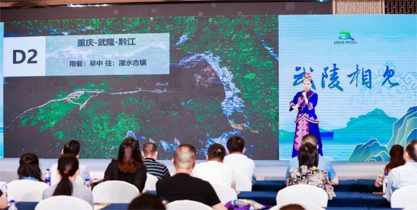 活動現(xiàn)場,土家幺妹廖珊以“峽谷福緣·武陵相見”為主題,全方位推介了黔江豐富的自然資源和民俗文化,以及“山水韻”“峽谷城”“武陵風”等特色文旅產(chǎn)品和精品旅游線路,帶領(lǐng)與會嘉賓“云游”黔江。