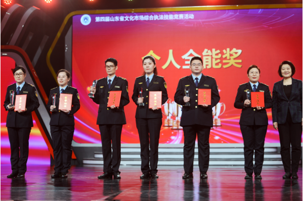 競(jìng)賽活動(dòng)中,由16市各選拔4名執(zhí)法人員組隊(duì)參加團(tuán)體和個(gè)人競(jìng)賽。經(jīng)過(guò)激烈角逐,最終,青島市代表隊(duì)獲得團(tuán)體成績(jī)第一名。獲獎(jiǎng)選手將在集中強(qiáng)化訓(xùn)練后,代表山東省參加全國(guó)文化市場(chǎng)綜合執(zhí)法技能競(jìng)賽。