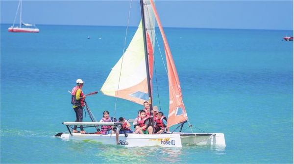 發(fā)力體育旅游,讓景區(qū)“動力”十足。2021年,天涯海角聯(lián)手蜈支洲島籌建了西部天涯海洋運動俱樂部項目,這是三亞大膽探索國企與民企混合所有制改革試點的成果。在推動傳統(tǒng)的觀光游向深度旅游體驗轉(zhuǎn)型的過程中,天涯海角游覽區(qū)實現(xiàn)由單一的海上快艇觀光產(chǎn)品,發(fā)展為擁有二十余項體驗感好、互動性強、趣味性足的“海陸空”旅游產(chǎn)品,為游客體驗高品質(zhì)水上運動提供了新去處。